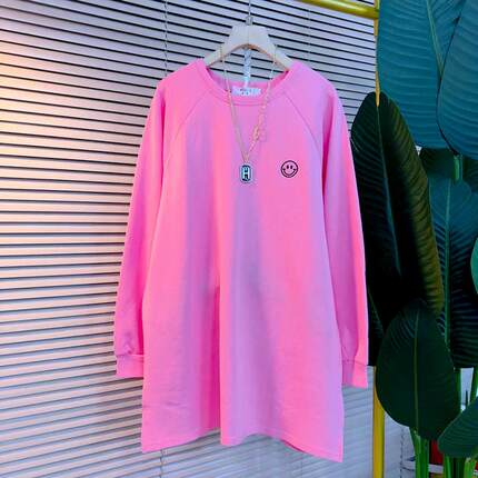 2025春季新款大码女装宽松显瘦笑脸刺绣长袖T恤休闲上衣内搭卫衣
