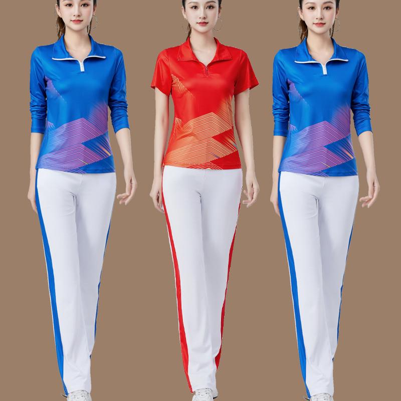 2024佳木斯广场舞服装新款运动套装长短袖春夏团体跑步健身操表演