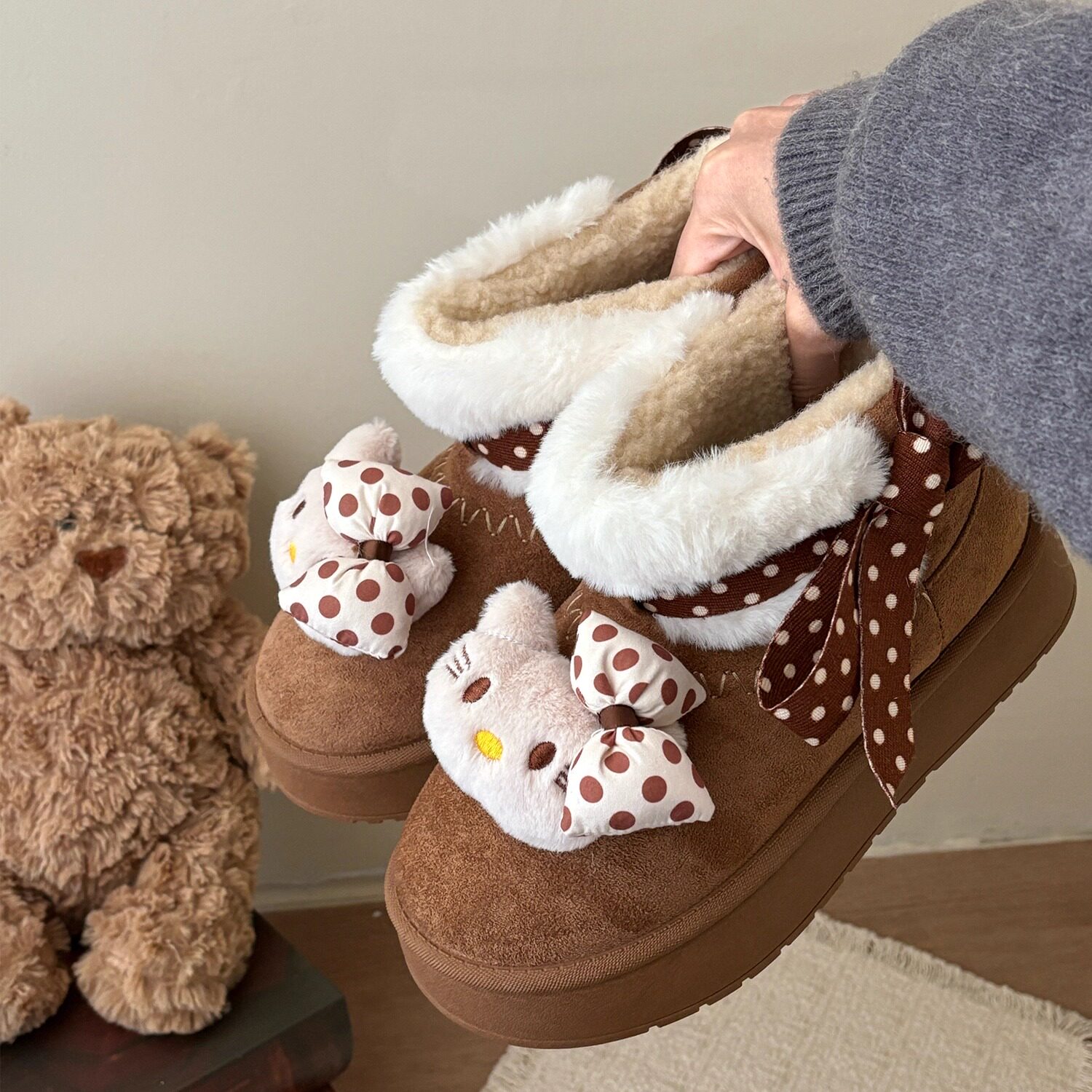 荔枝公园kitty加厚雪地靴女款2025新款冬季棉鞋女厚底加绒保暖鞋