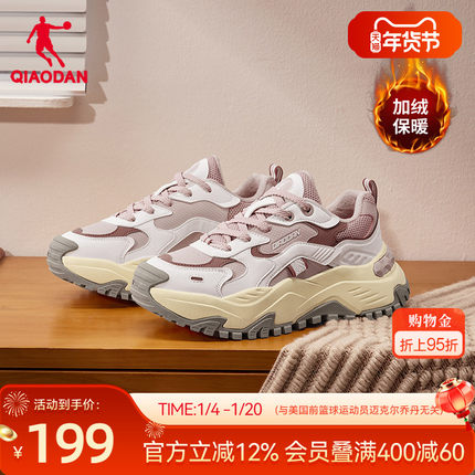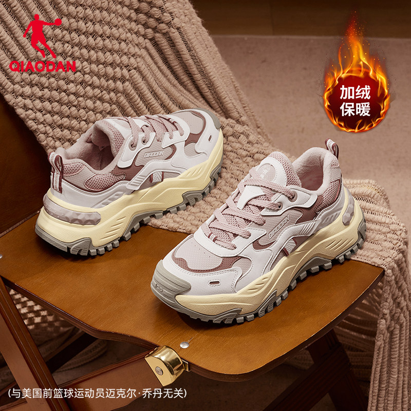 乔丹硬糖加绒保暖休闲鞋女棉鞋2025冬季厚底增高皮面防水老爹鞋子