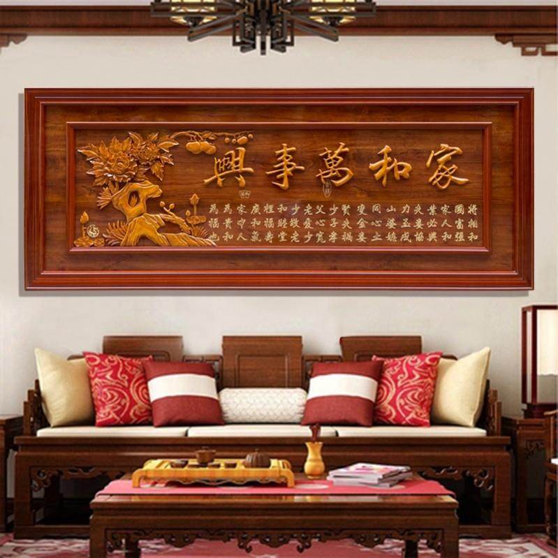 东阳木雕新中式客厅挂画沙发背景墙3d立体浮雕画高档挂匾装饰画