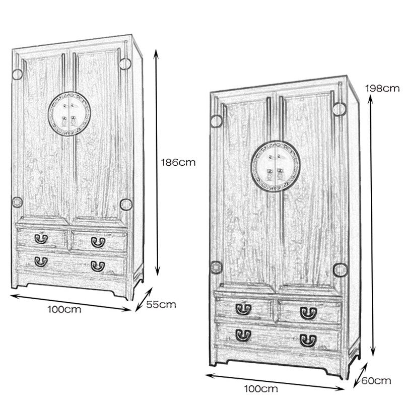 香樟木衣柜实木大衣柜双门衣橱整体储物柜立柜新中式樟木衣柜