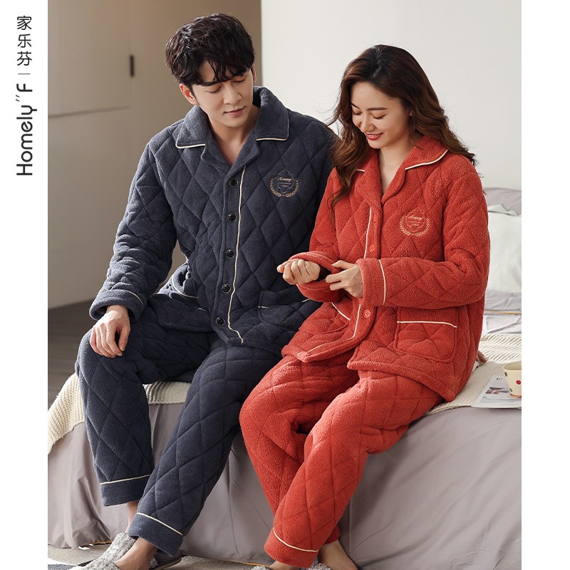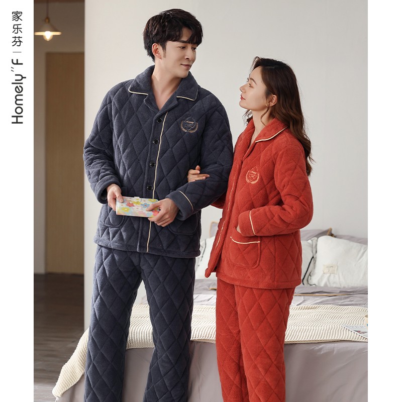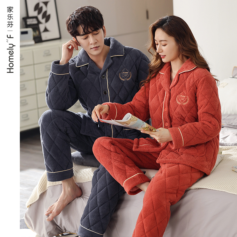 情侣睡衣女男士冬季三层加厚夹棉加绒保暖珊瑚绒秋冬款冬天法兰绒