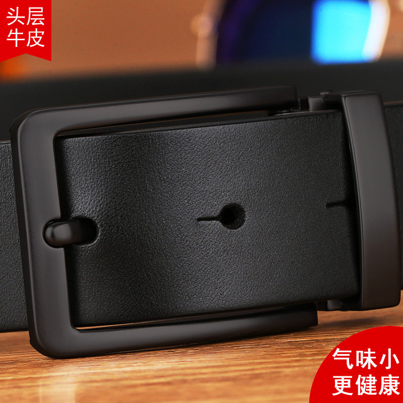2025年新款皮带真皮男士头层牛皮休闲针扣裤腰带黑色皮带男青年潮