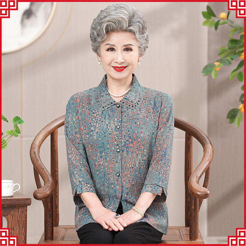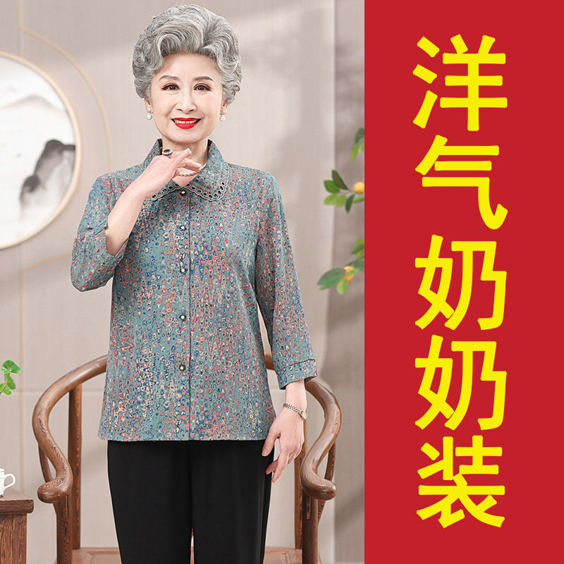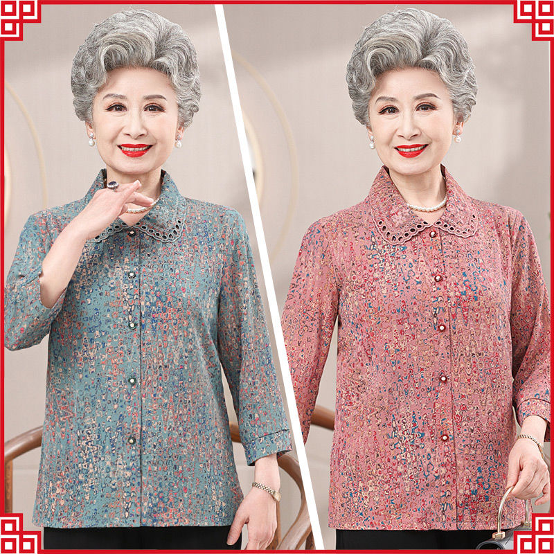 老年人夏装女衬衫奶奶薄上衣70岁80老太太老人衣服中年妈妈款衬衣