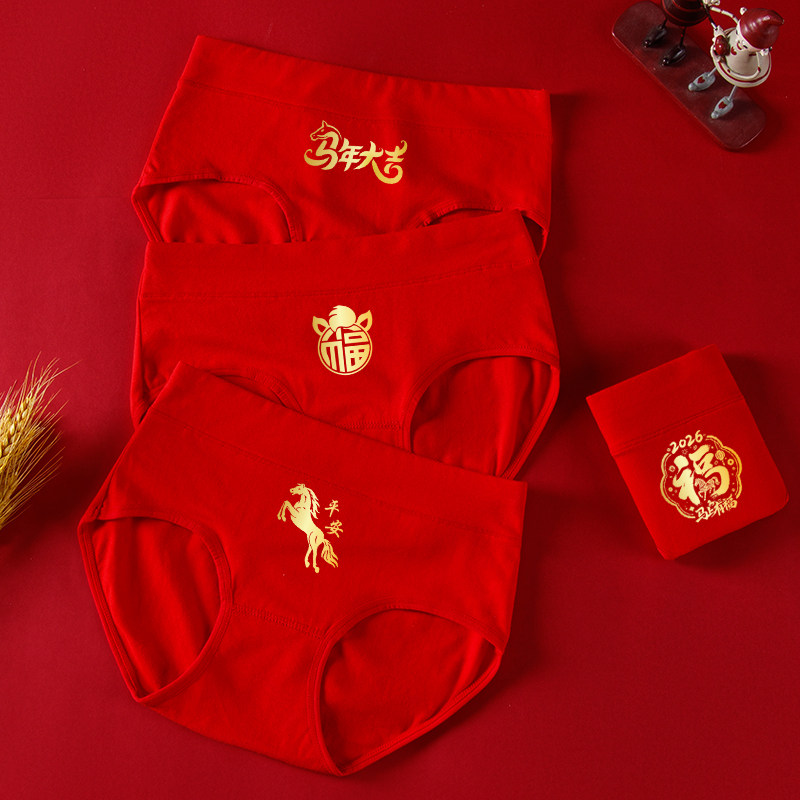 2026本命年内裤女马年纯棉抗菌新款大红色属马女士中腰礼盒装袜子