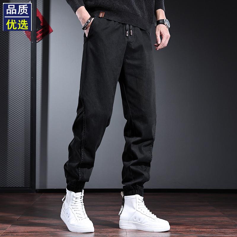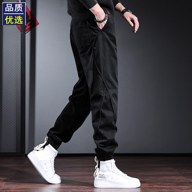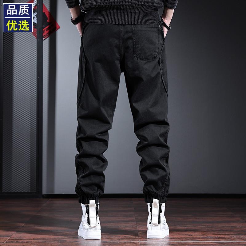 秋季工装裤子男潮牌宽松休闲裤纯棉黑色痞帅美式设计感加绒男裤厚
