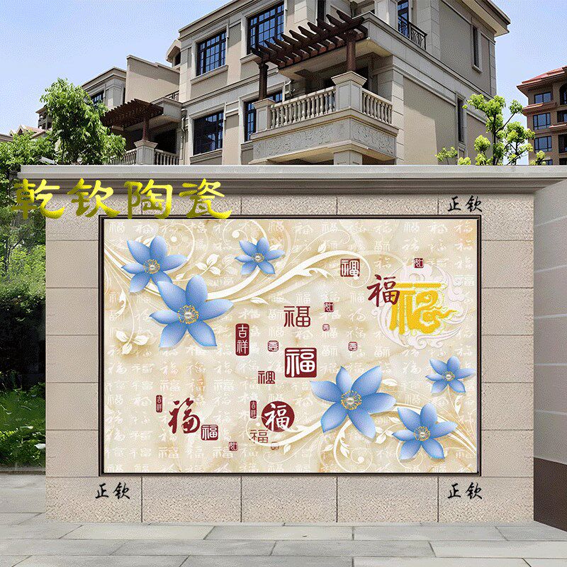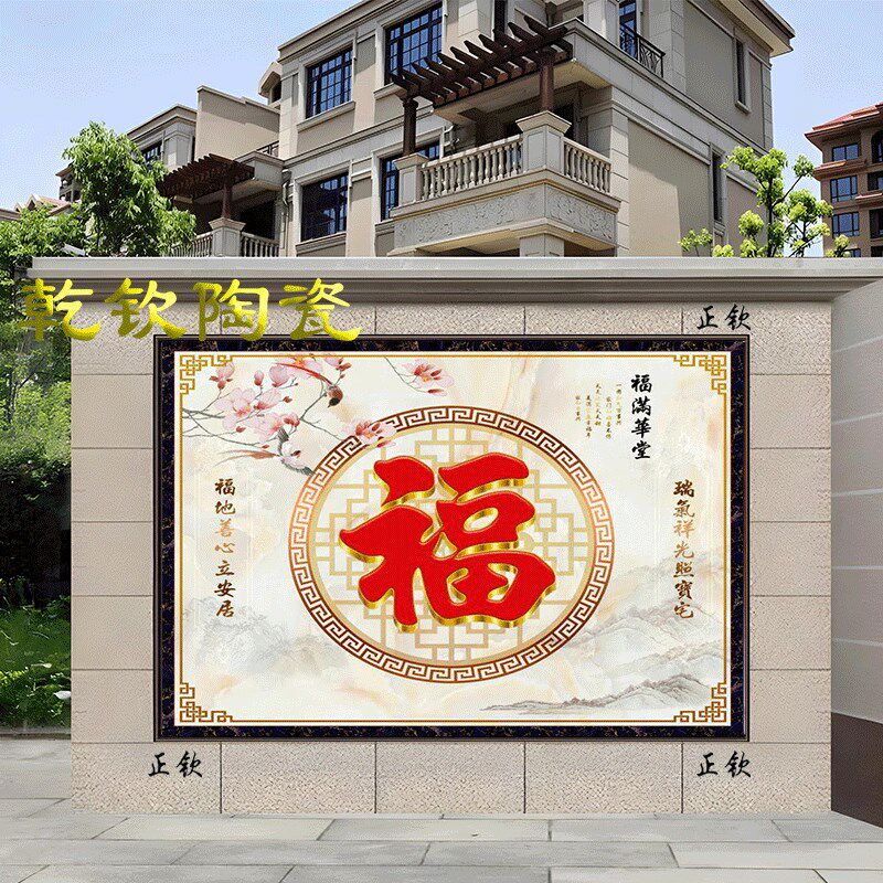 定制福字家和富贵照壁画室外专用F瓷砖背景墙迎门墙庭院影壁墙