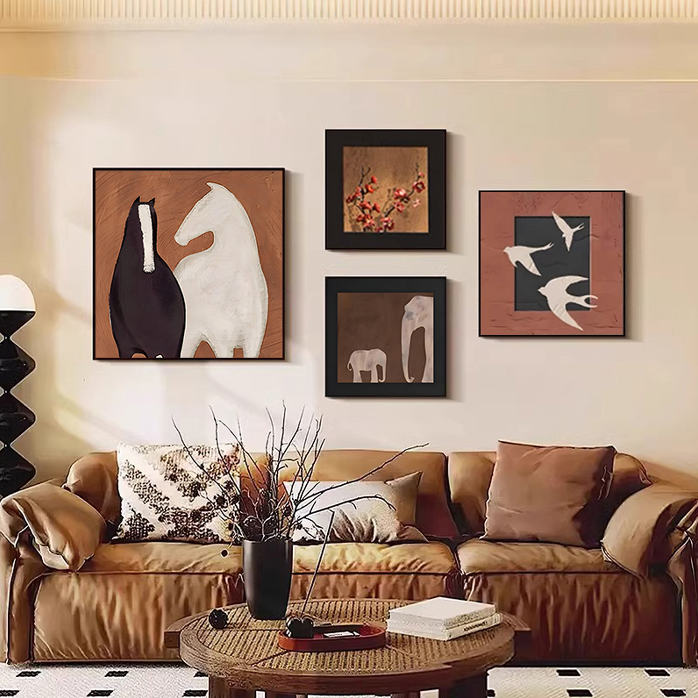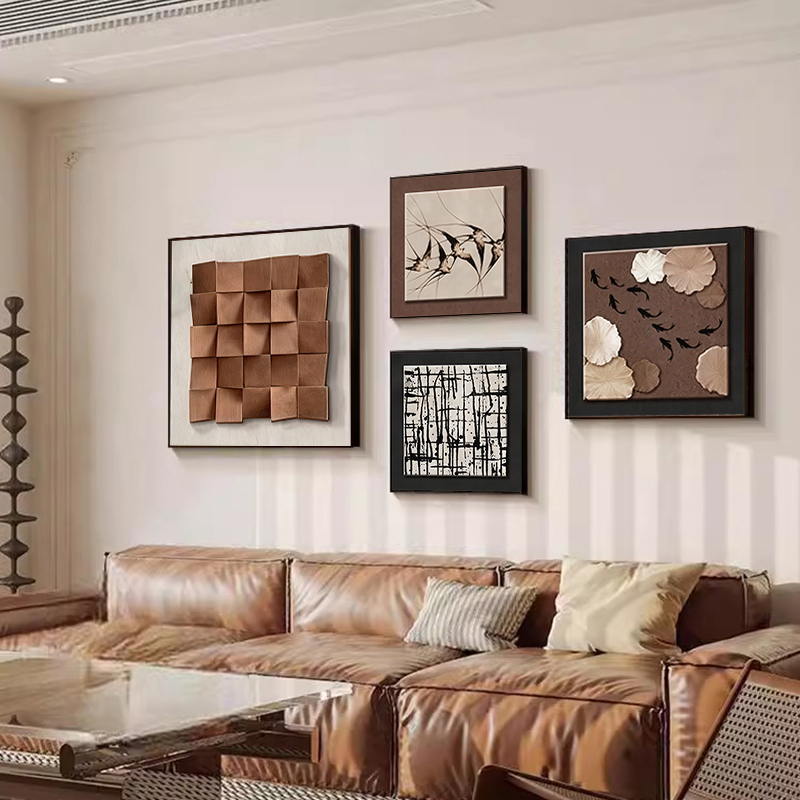 中古风高级感客厅装饰画沙发背景