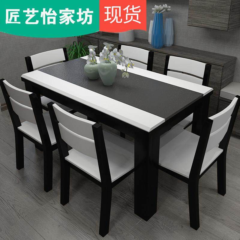 火烧石餐桌椅组合北欧大理石大小户型现代时尚简约方形火山石饭桌