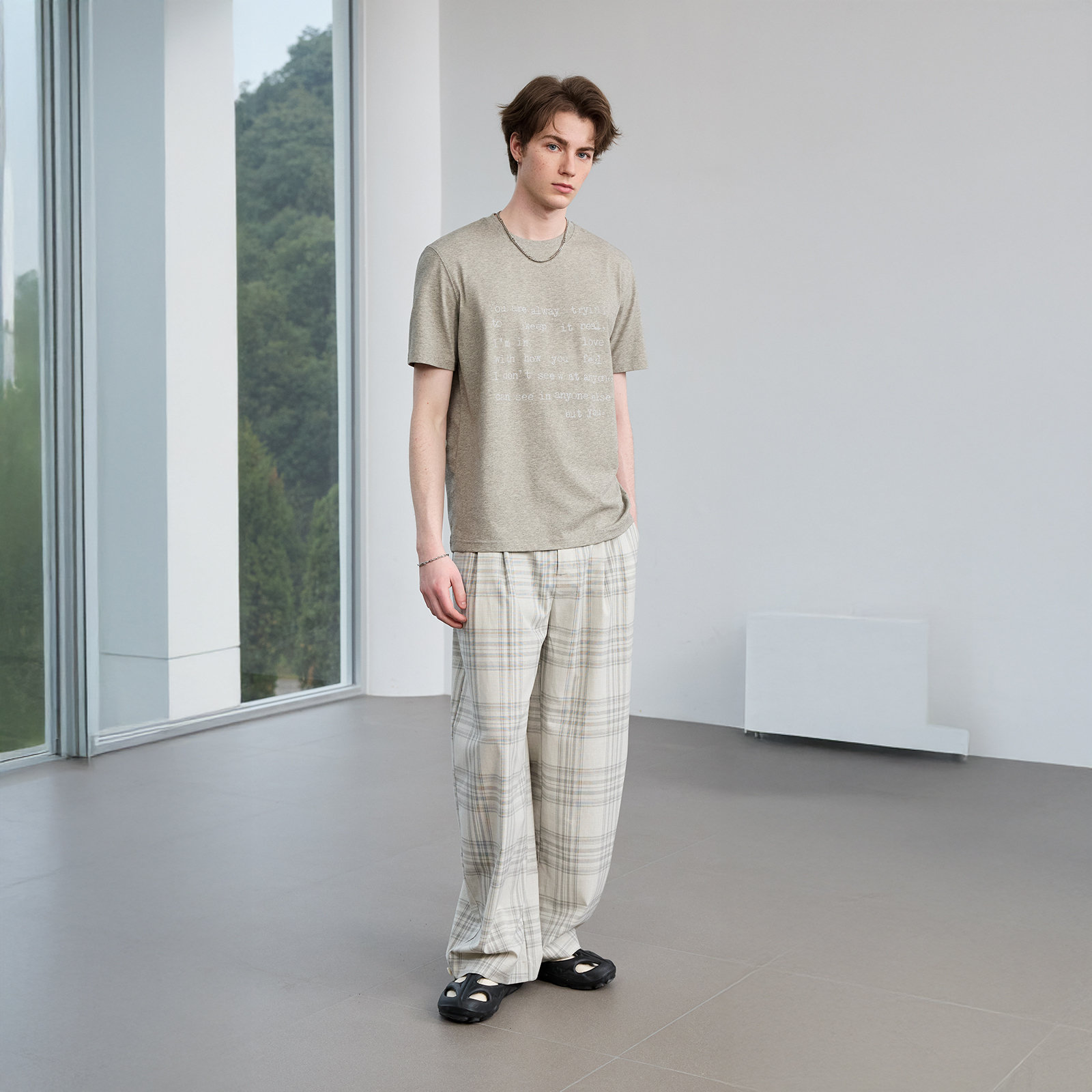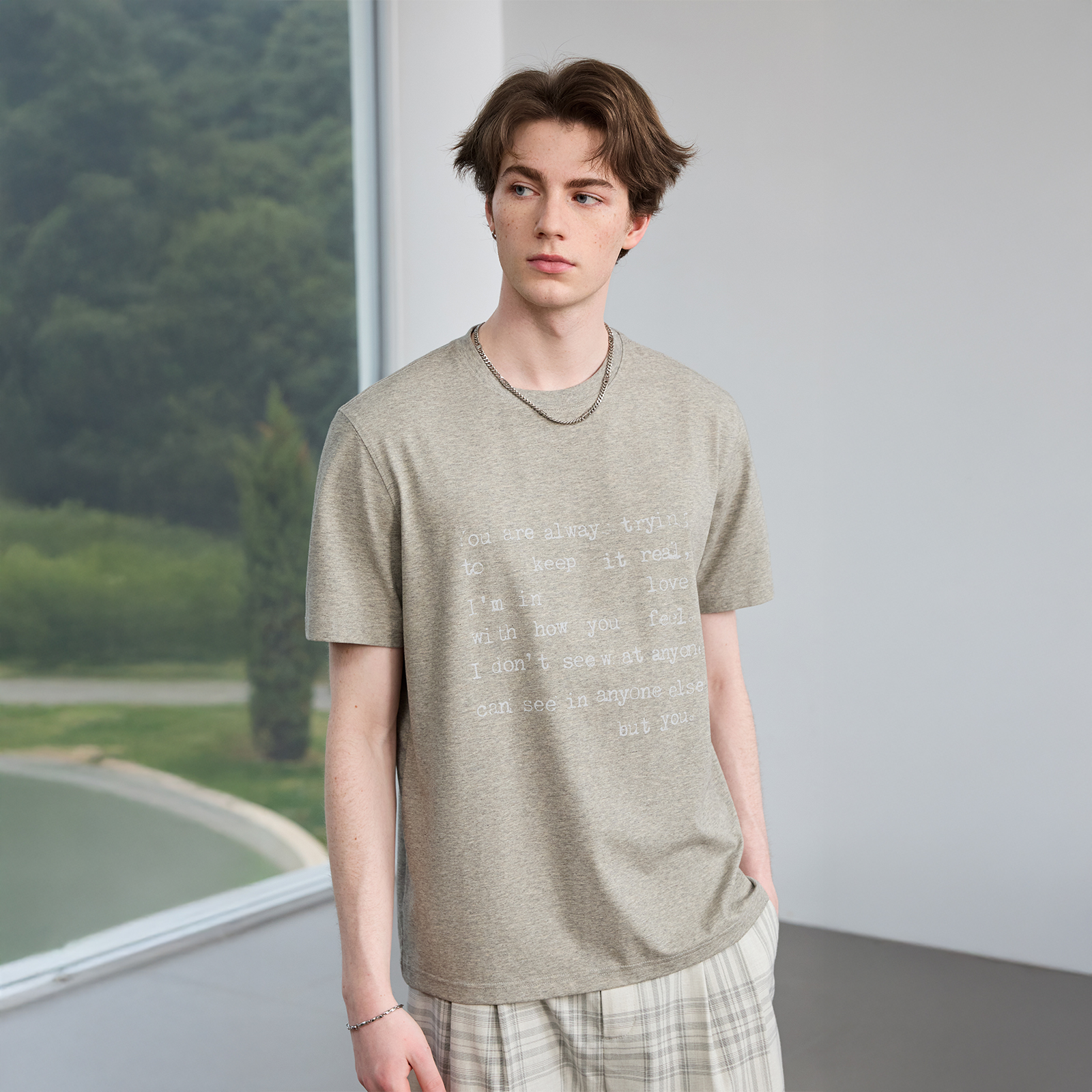 Lilbetter220g手写字母印花正肩短袖T恤男士简约休闲针织半截袖LB