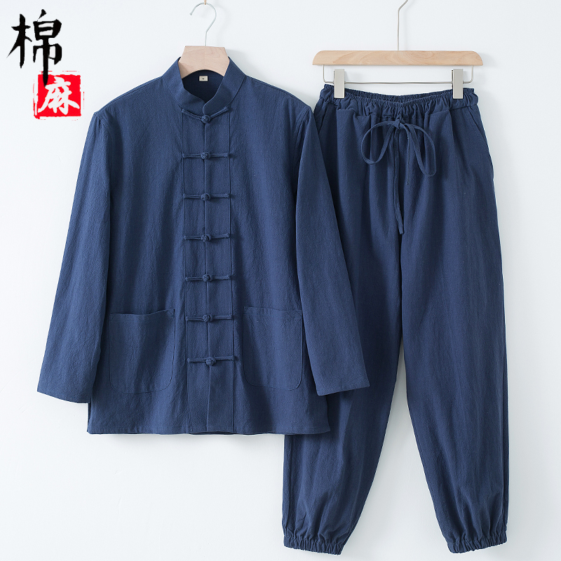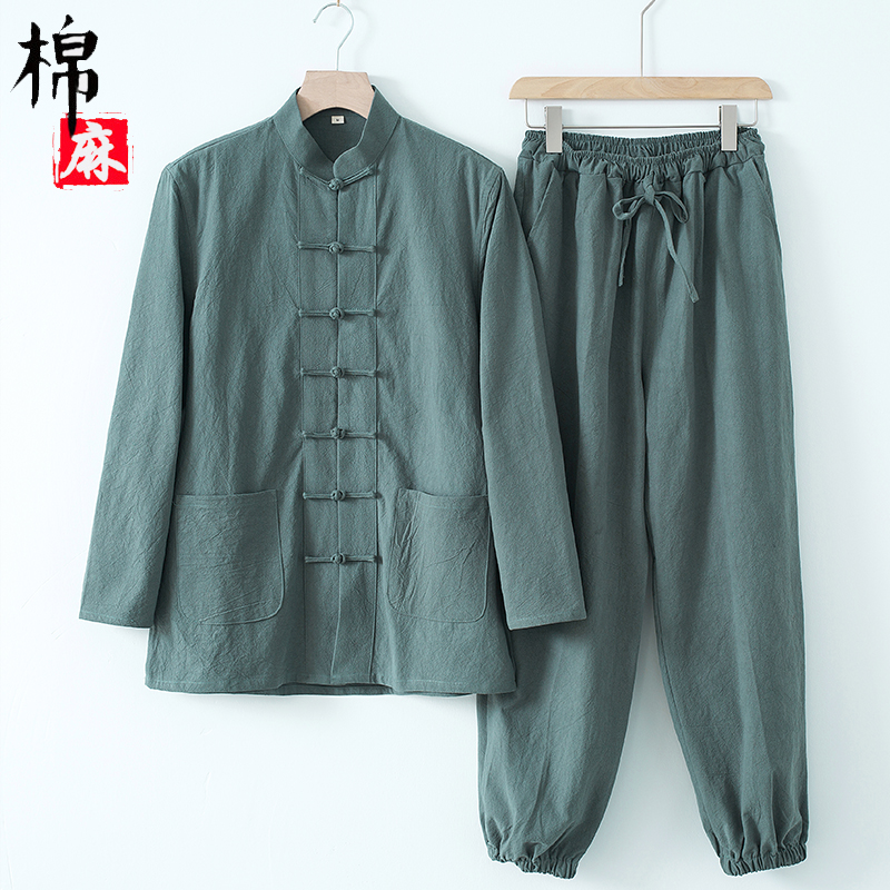 中国风棉麻居士服禅服茶服套装中式复古男装佛系古风打坐唐装汉服