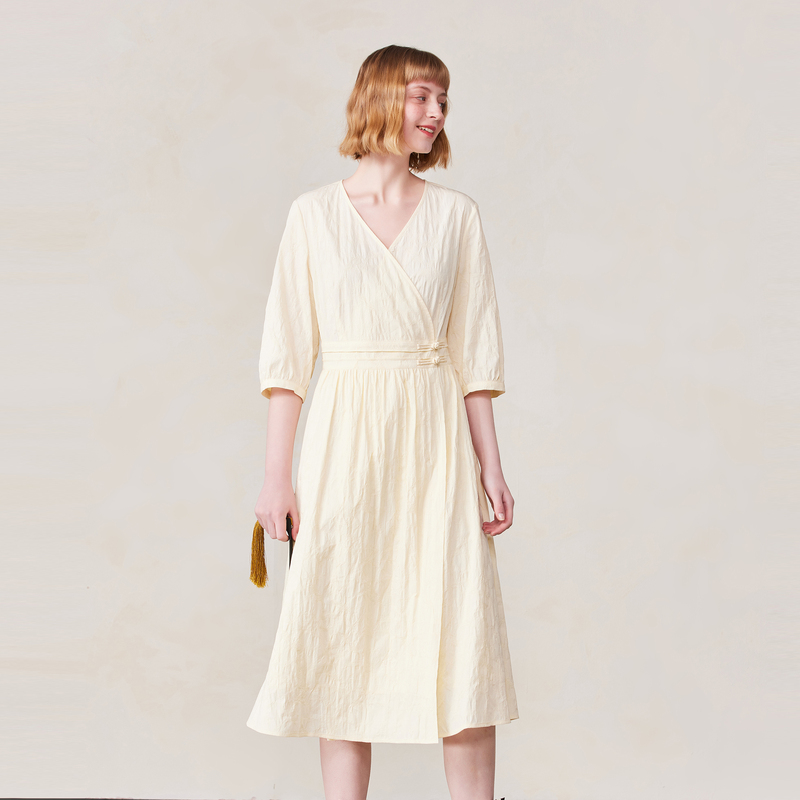 商场同款飞鸟和新酒秋季中长款设计感短袖连衣裙FR35018029