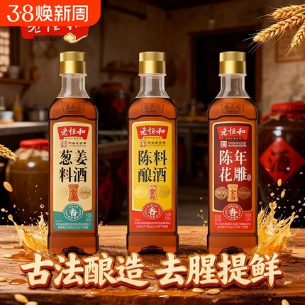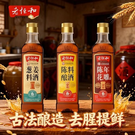 老恒和家用组合420ml陈酿花雕葱姜调味黄酒烧鱼去腥料酒调料陈年