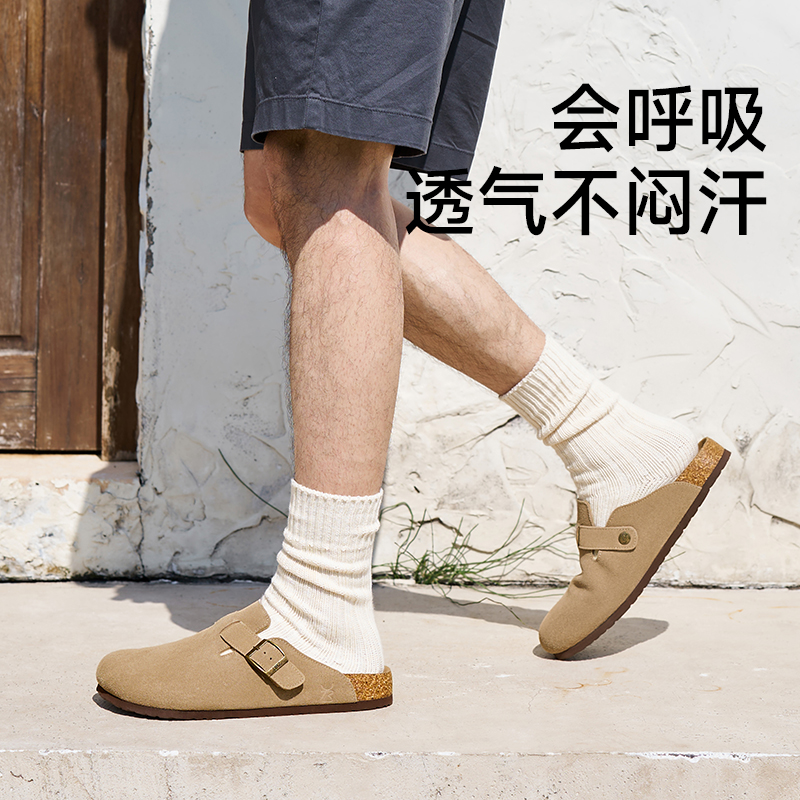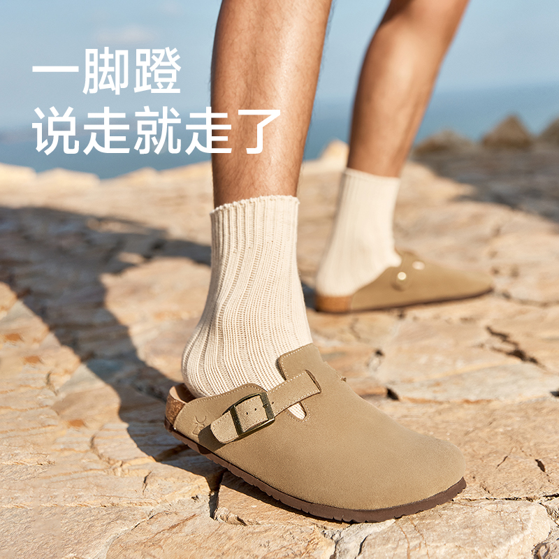 UBZ厚底包头勃肯半拖2025年秋季新款外穿一脚蹬男女情侣博肯拖鞋