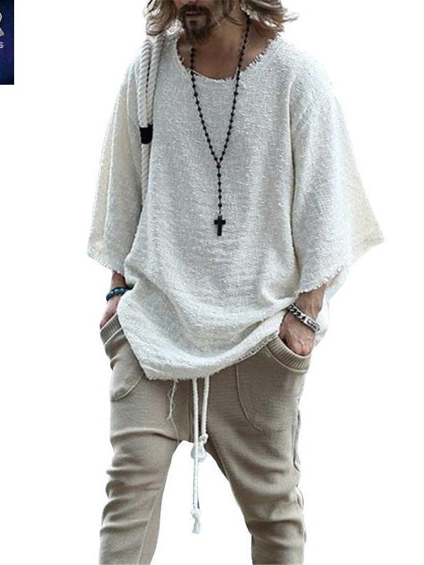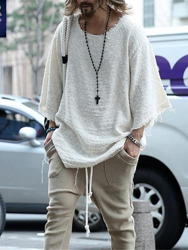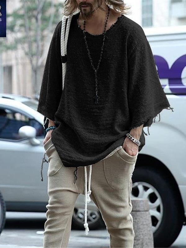 2023 men T-shirt夏新款男宽松大码中长袖T恤欧美潮流七分袖上衣