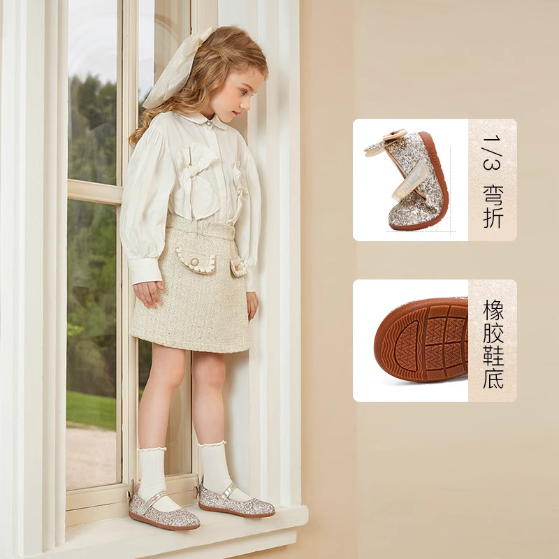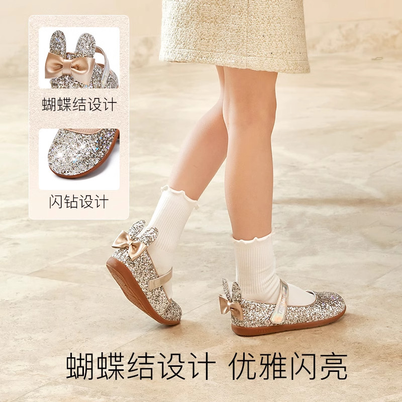 泰兰尼斯童鞋meta儿童皮鞋宝宝水晶鞋亮晶晶女童鞋闪亮公主鞋爱莎