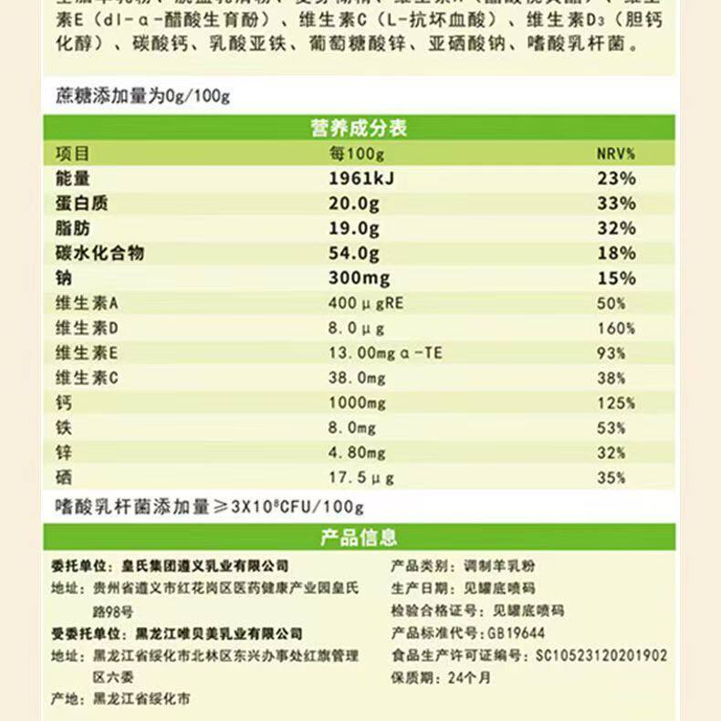 遵义中老年羊奶粉600克罐装高钙中老年人营养即食冲饮超市同款