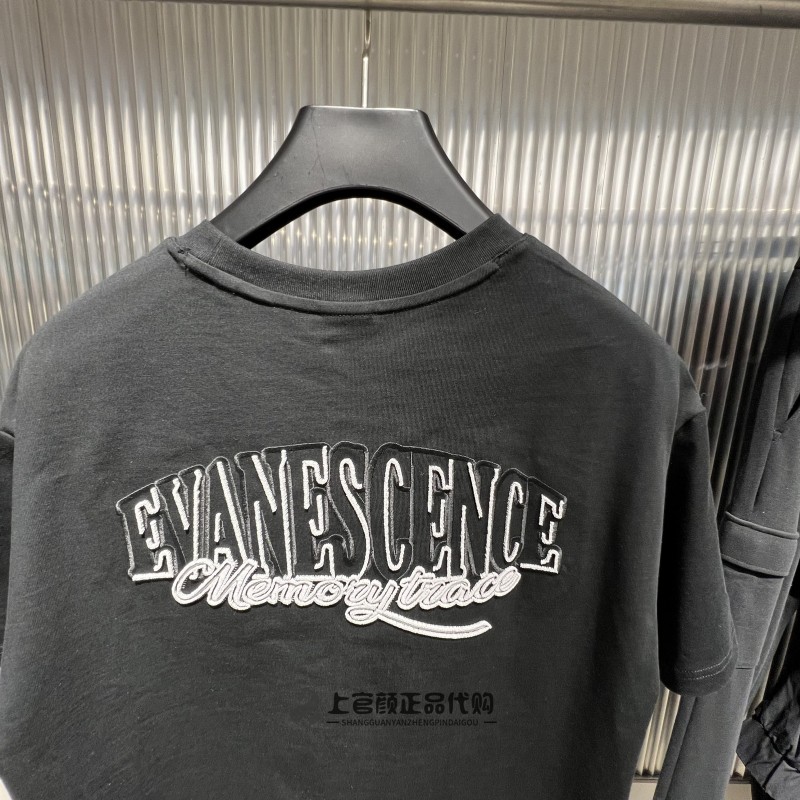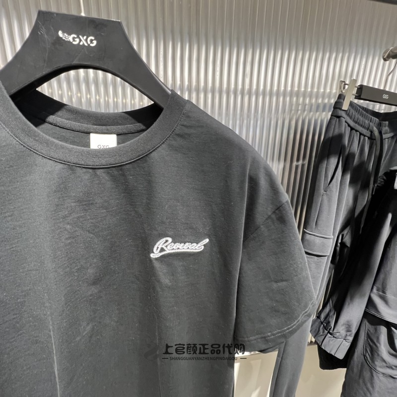 GXG男装2025夏季新品黑色贴布刺绣圆领短袖T恤潮流宽松G25A442061