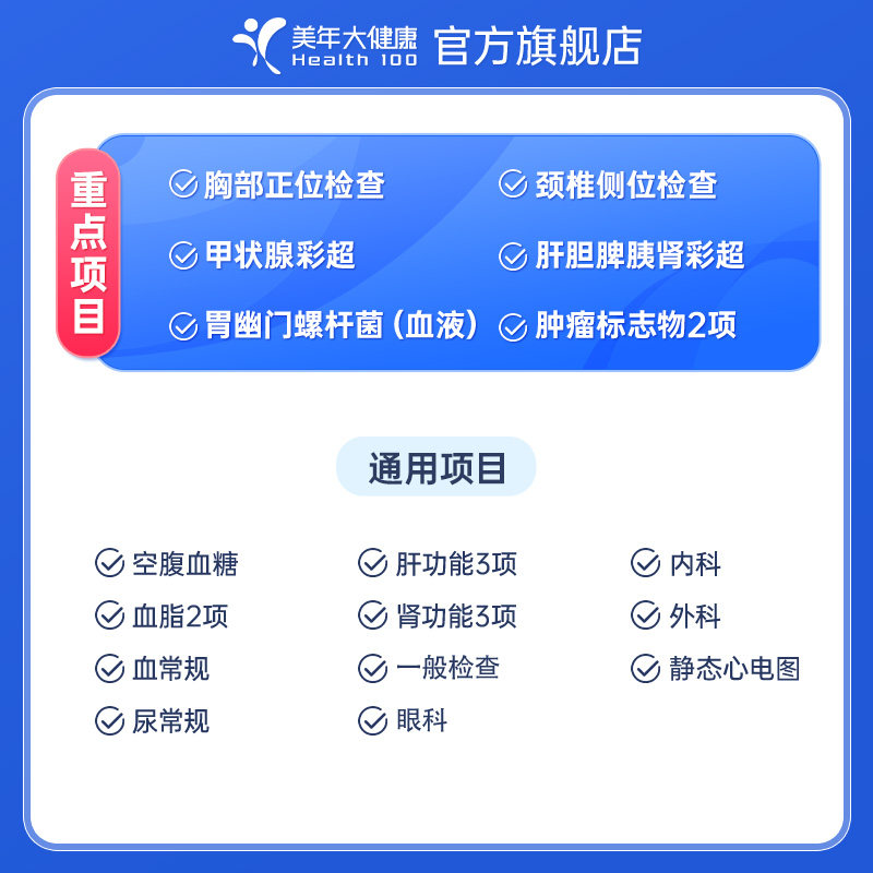 美年大健康活力基础筛查套餐159TMMN00全国420+门店通用