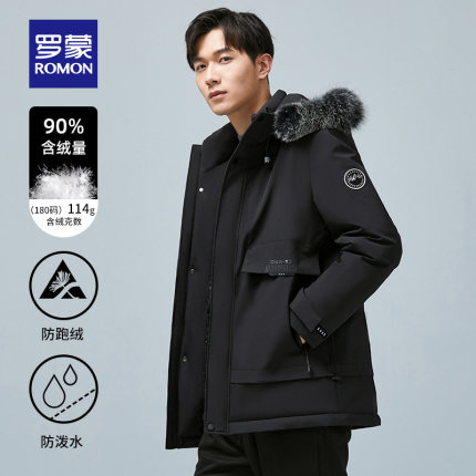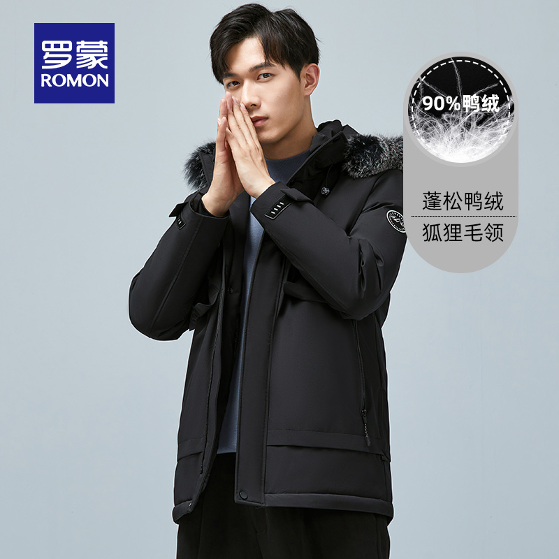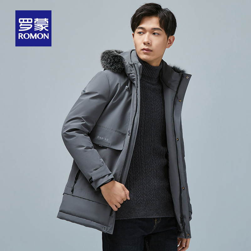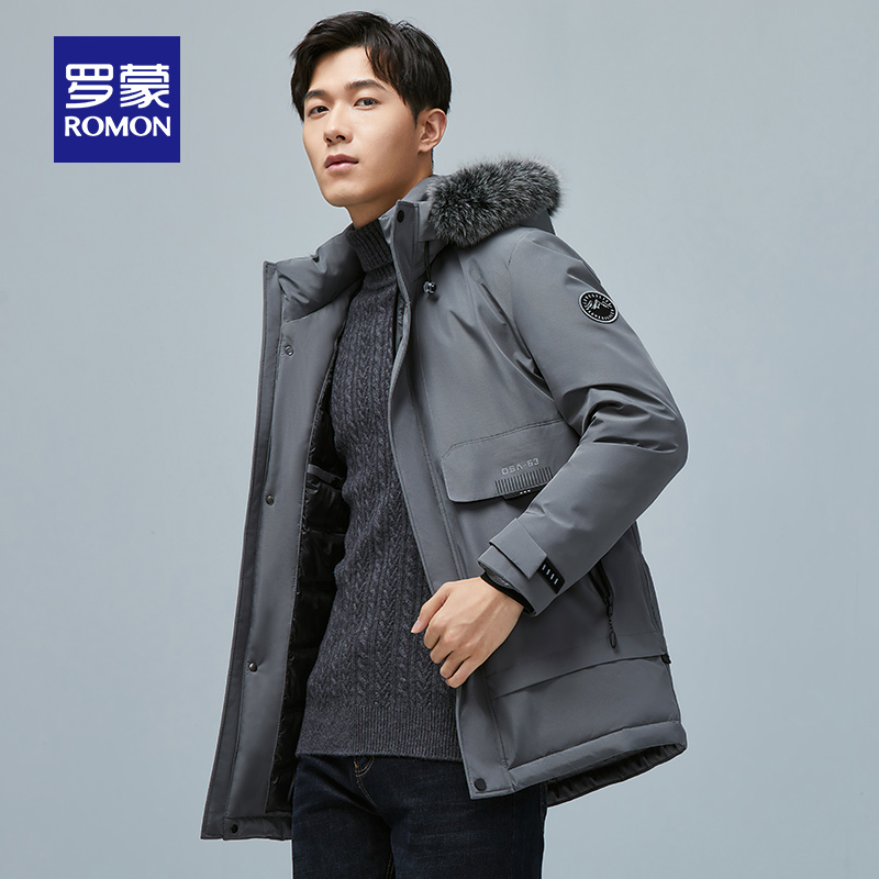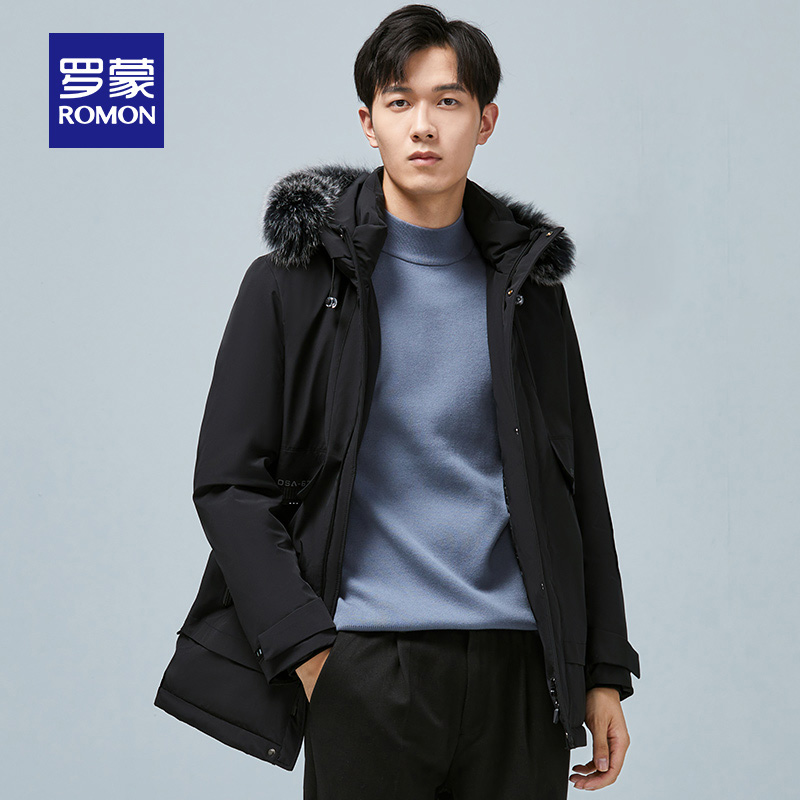 【直降】罗蒙男士中长款羽绒服冬季新款狐狸毛领服保暖连帽外套男