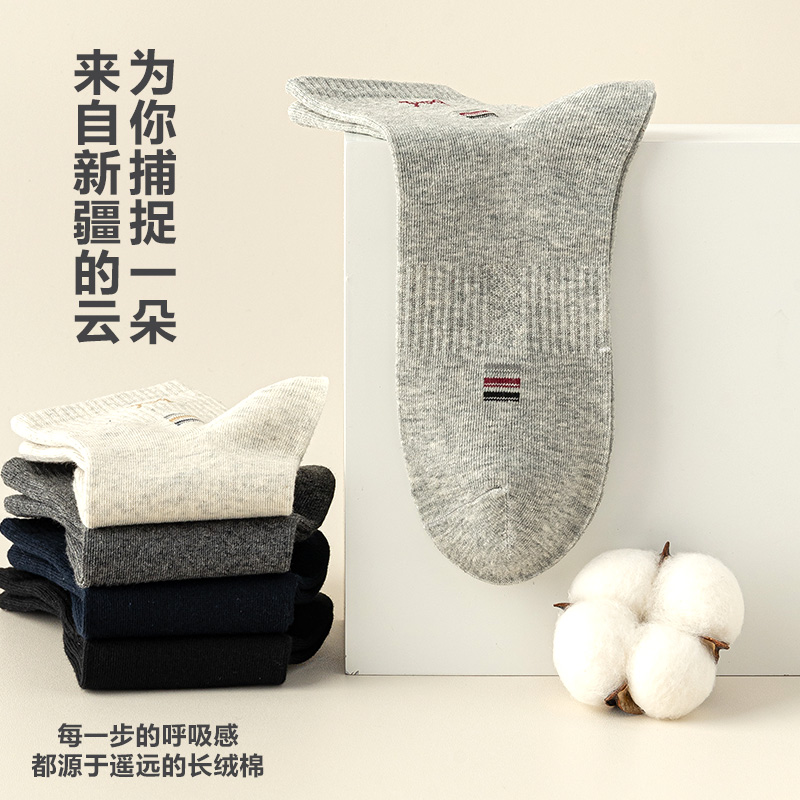 猫人袜子男款纯棉中筒袜男士春秋季防臭抗菌青少年运动透气长筒袜