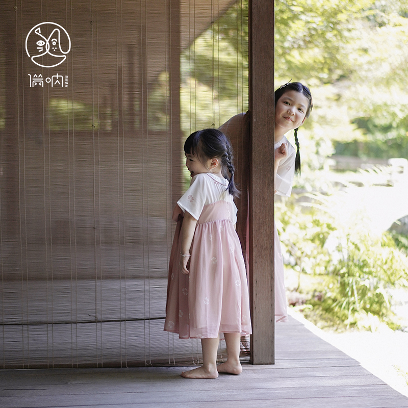 满呐2024夏季新品原创短袖汉服裙粉色四叶草女童连衣裙