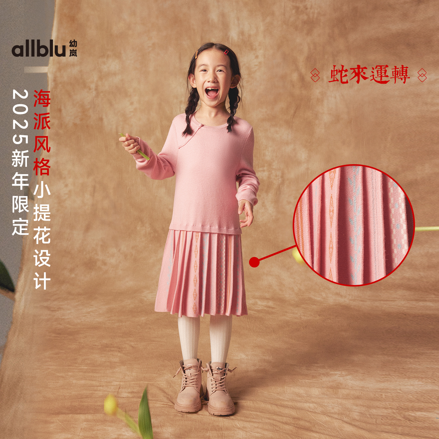 allblu幼岚儿童连衣裙女童秋冬新款提花百褶裙保暖舒适女裙