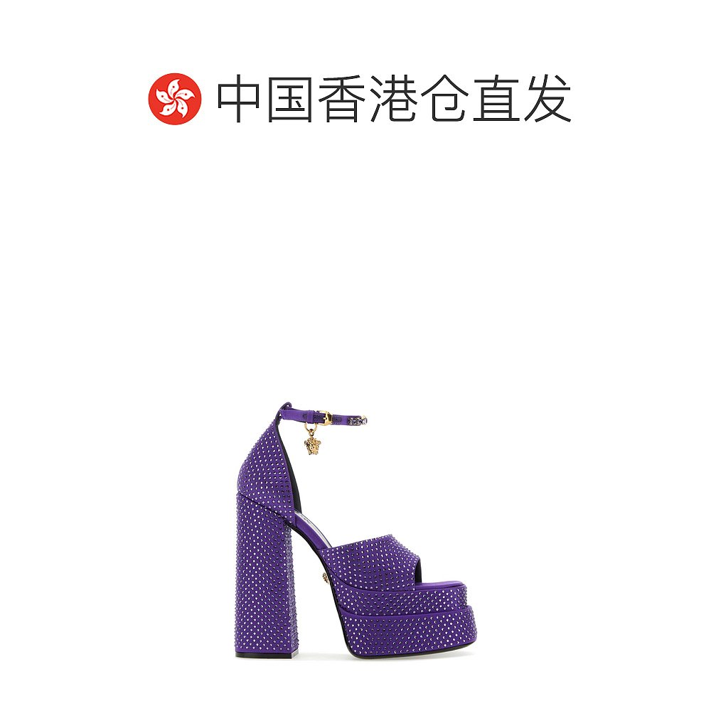 1h可退 香港直邮Versace 范思哲 女士 MEDUSA AEVITAS 紫色绸缎凉