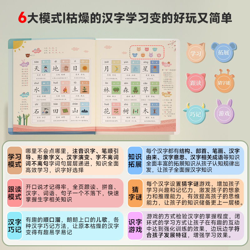 儿童识字大王3000字认字卡片早教发声书幼儿园宝宝有声启蒙点读机