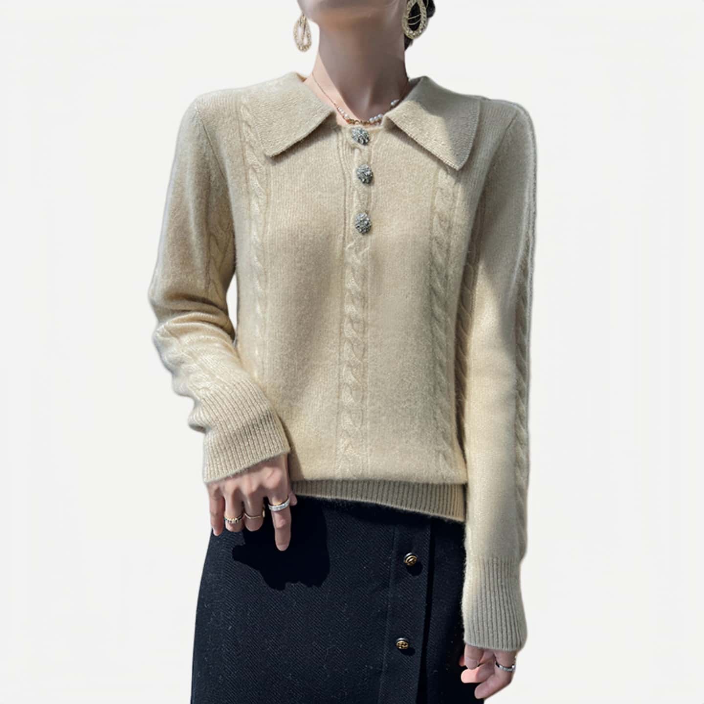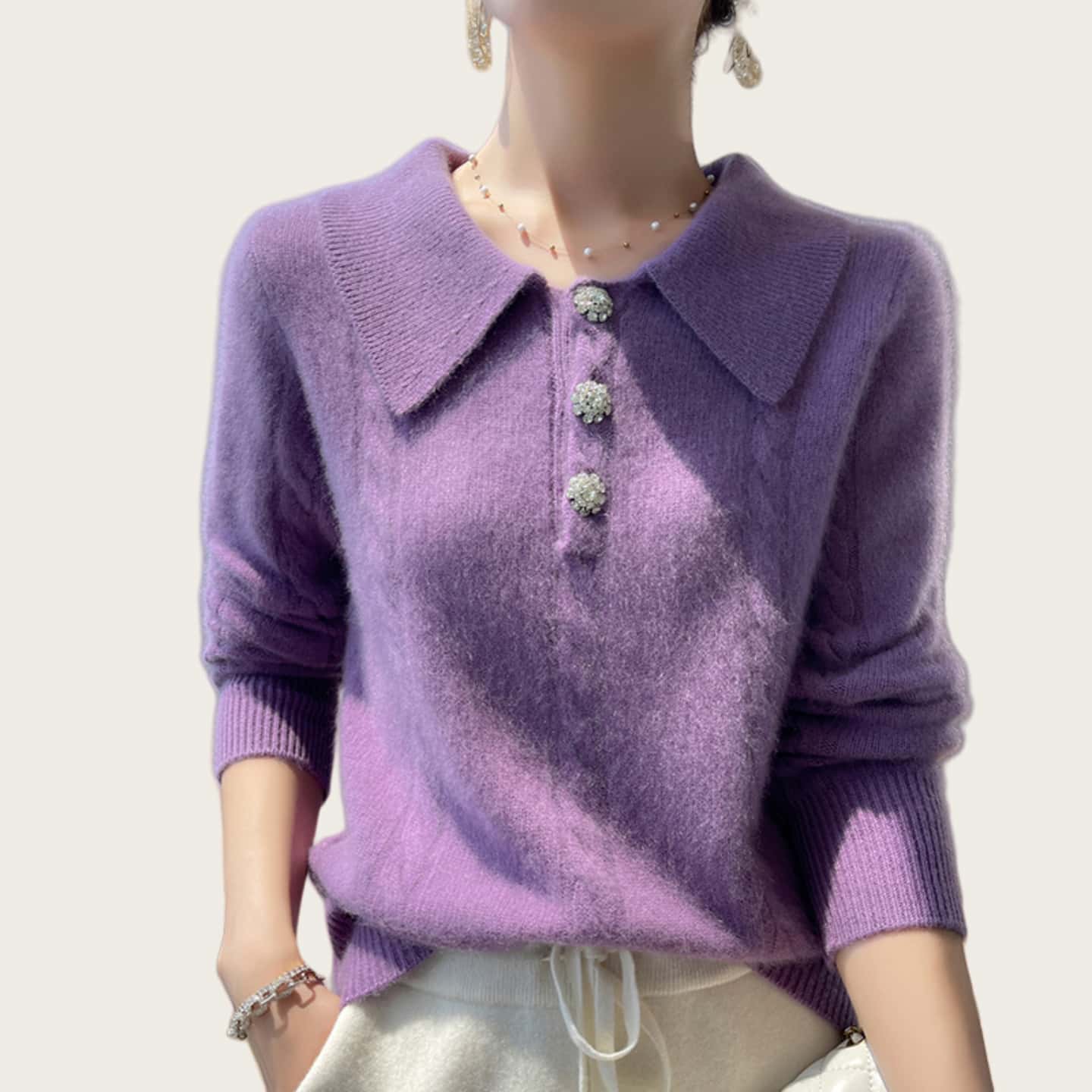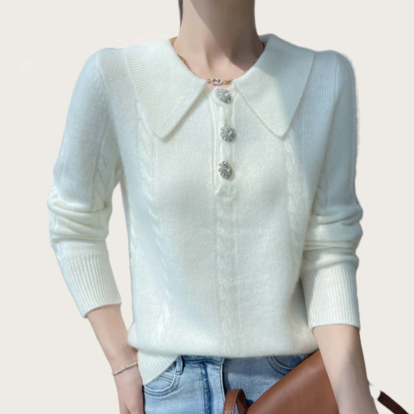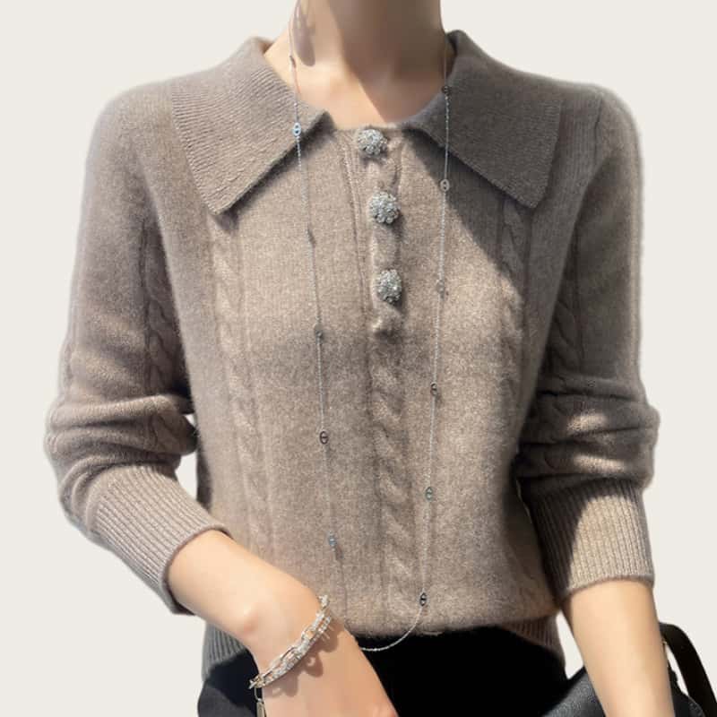 2025早秋新款韩版宽松翻领套头毛衣女针织衫上衣女百搭Polo领长袖
