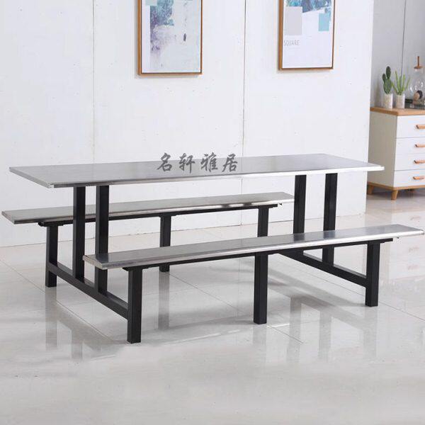 学校食堂餐桌椅组合4人6人8人学生员工地工厂不锈钢连体饭堂桌椅