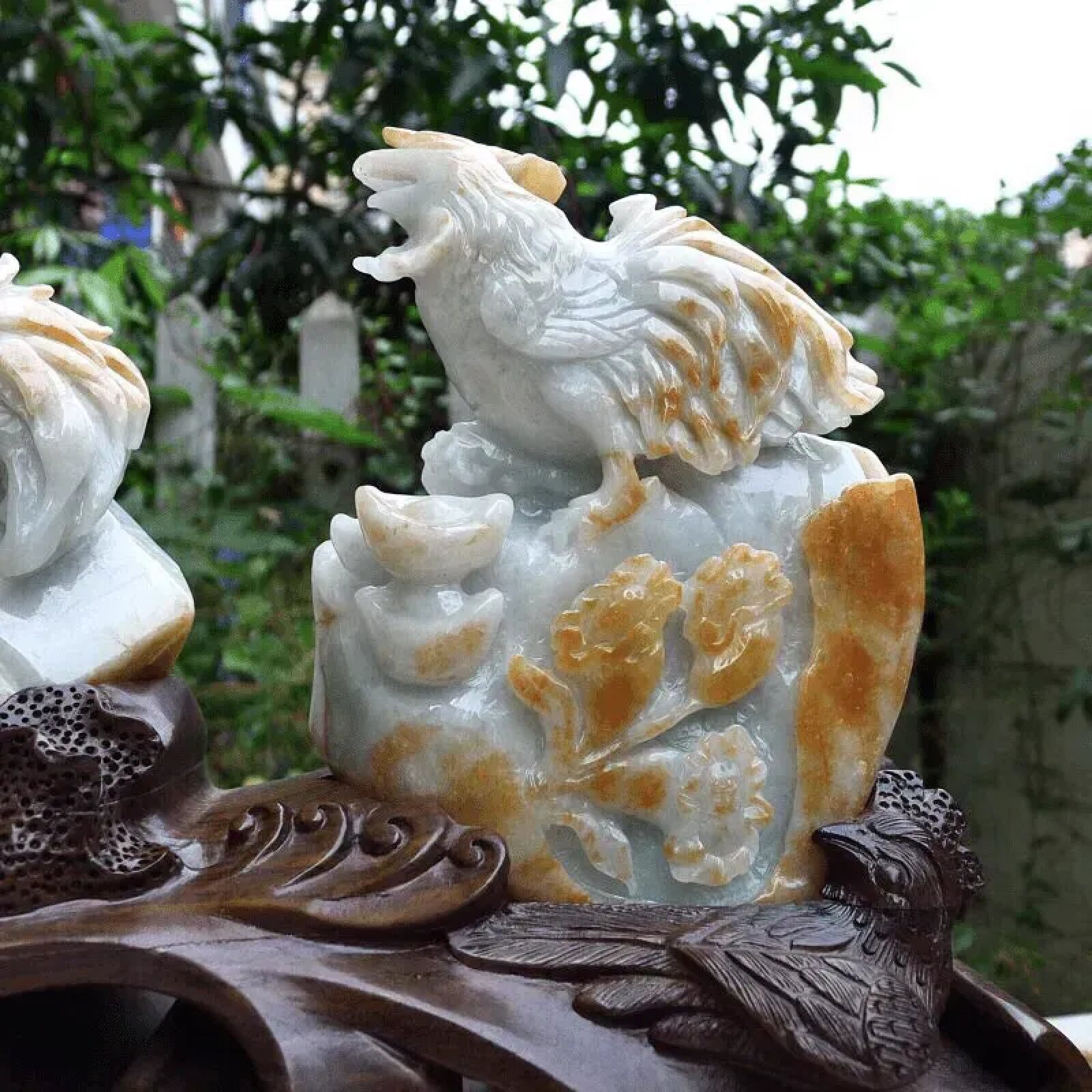 缅甸翡翠A货老坑水润招财黄翡精雕金鸡纳福摆件 生肖鸡客厅摆2.9