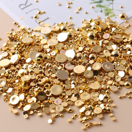 金色ABS半面半圆散珠仿珍珠子贴片手机美容DIY手工饰品配件粘发卡