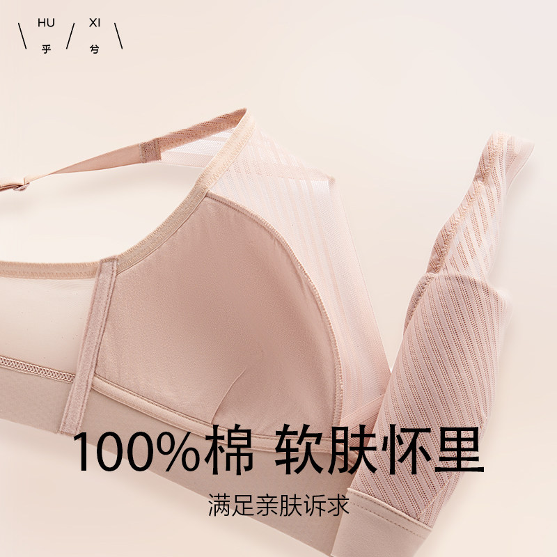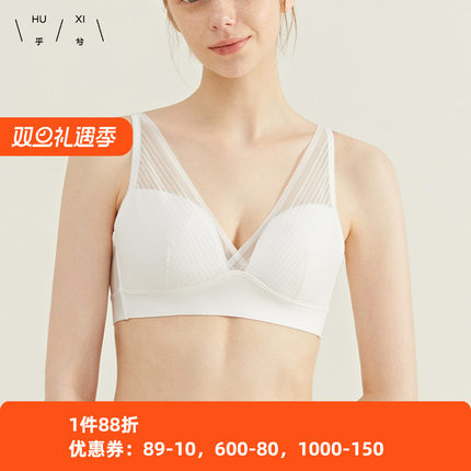 乎兮深V三角透气蕾丝无纺布薄杯收副乳胸罩聚拢小胸显大内衣文胸