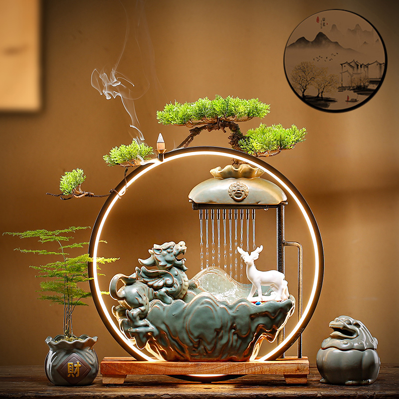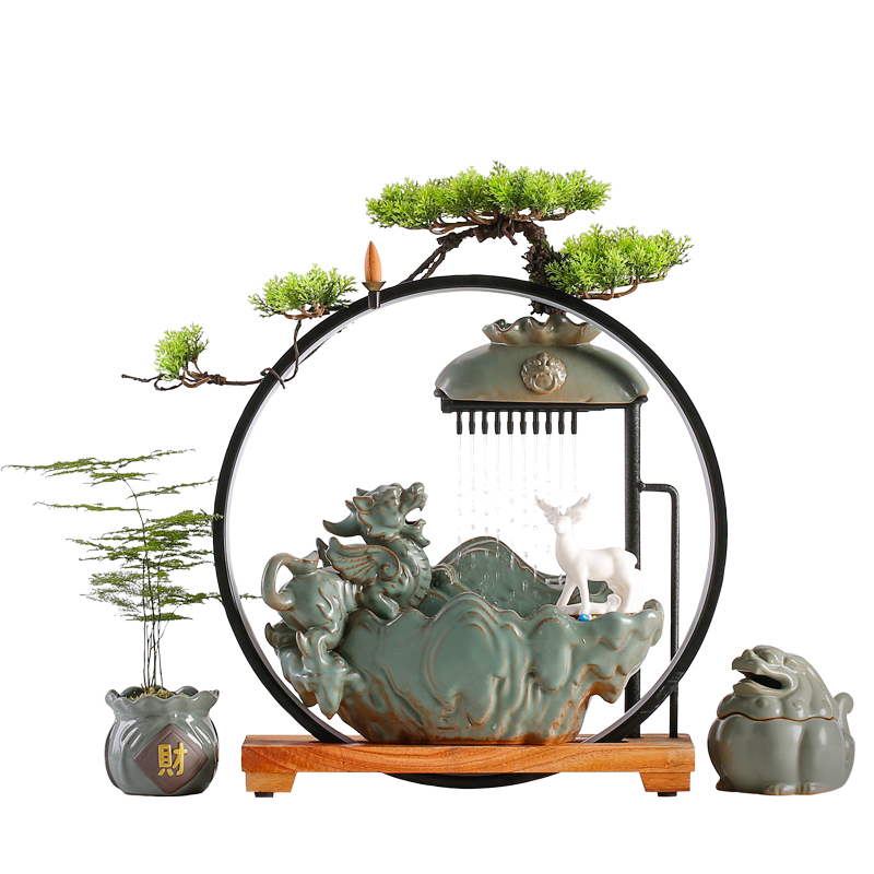 摆件貔貅创意办公室陶瓷加湿器礼品流水客厅生财家居喷泉开业招财