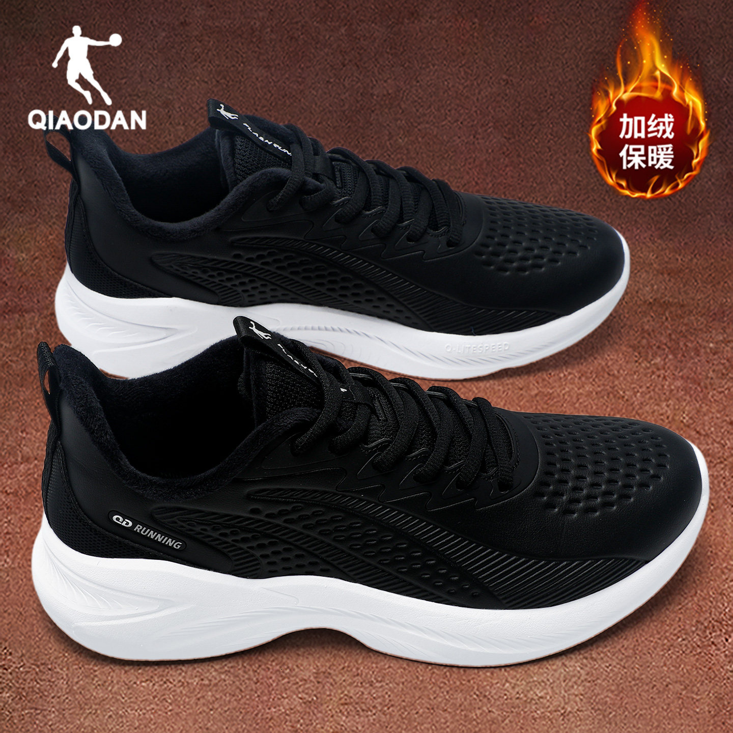 乔丹运动鞋男鞋皮面防水跑步鞋冬季新款加绒棉鞋男生专业减震跑鞋