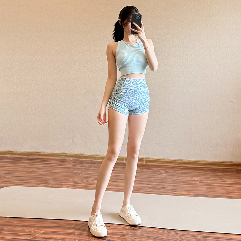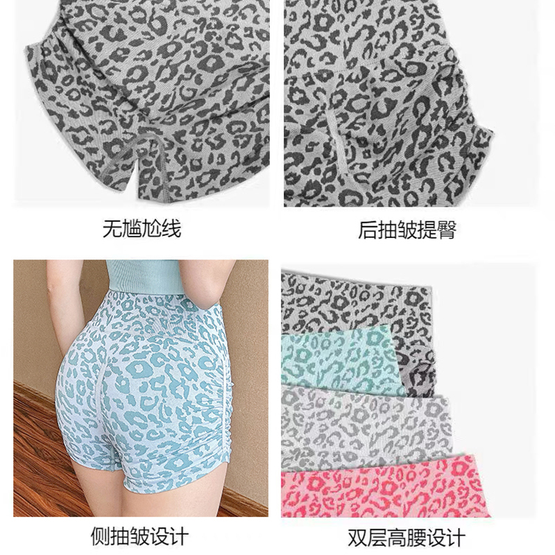 豹纹瑜伽短裤女外穿速干跑步专用运动裤高腰提臀健身三分裤夏薄款
