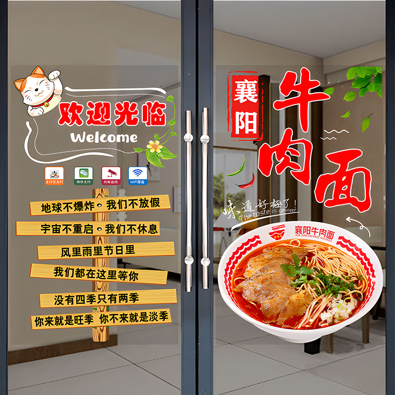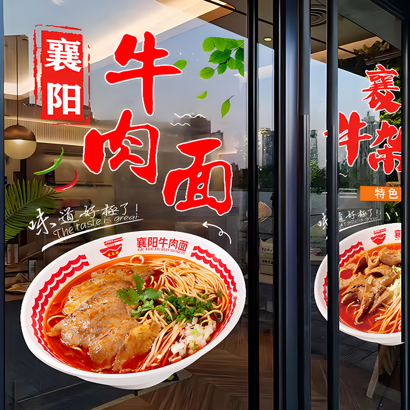 襄阳牛肉面玻璃门广告贴纸牛杂面馆小吃店铺食堂橱窗装饰静电贴画