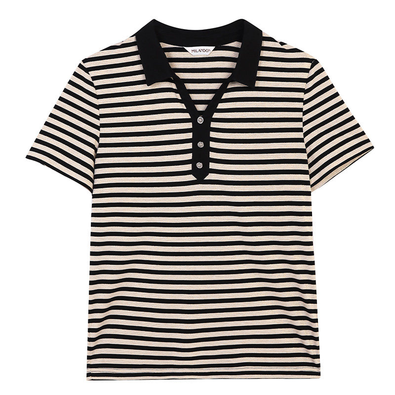 米兰登时尚条纹T恤衫女短袖休闲