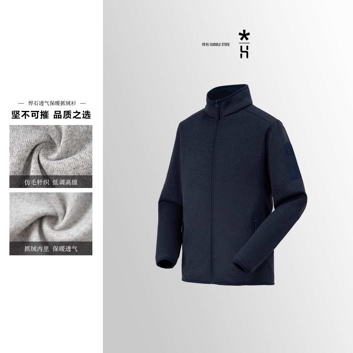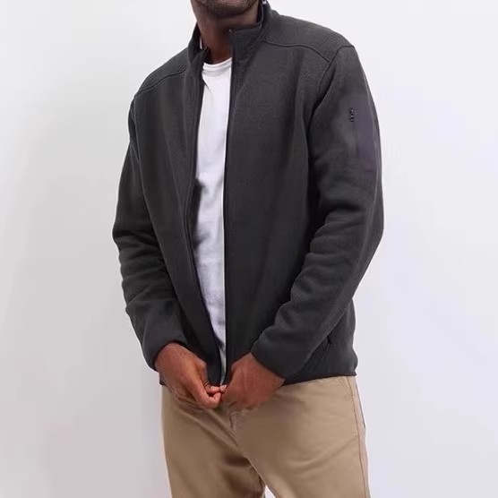 鸟家户外运动抓绒衣内胆男修身拉链立领针织外套外贸男装保暖夹克