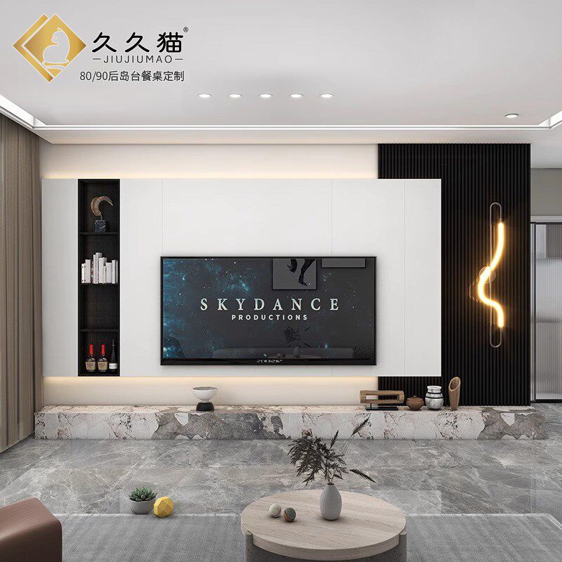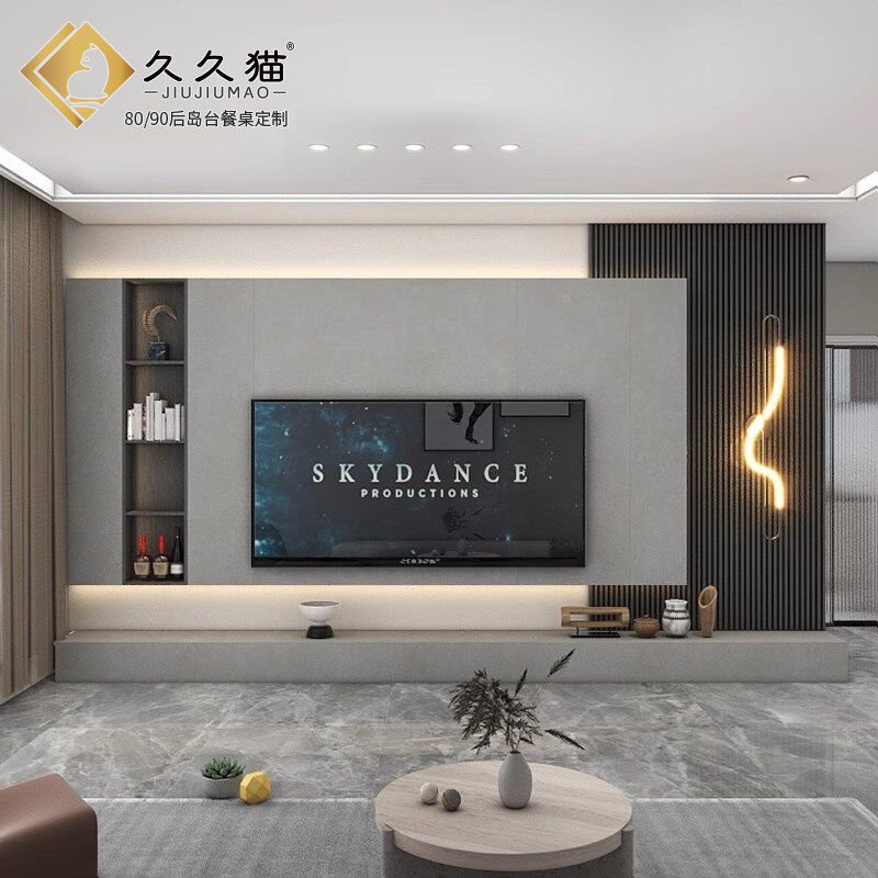 2024新款悬空岩板背景墙素色奶油白电视墙影视墙客厅格栅纯色瓷砖