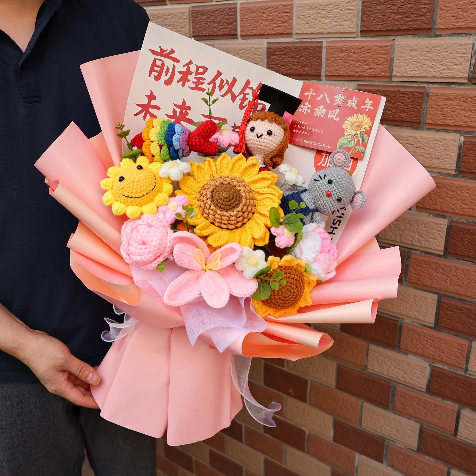 成人礼毕业礼物针织向日葵花束中考高考一举夺魁送孩子男女生同学