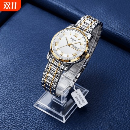 正品瑞士2024新款手表男士全自动机械风防水精钢带双日历男表夜光