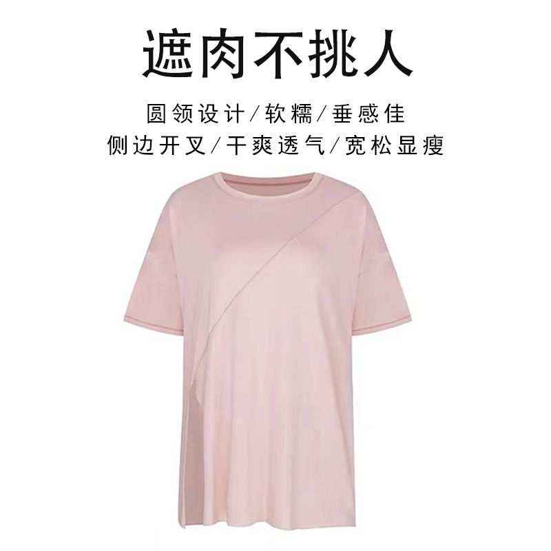 大码运动健身上衣速干衣短袖宽松胖mm200斤跑步训练服瑜伽服上衣