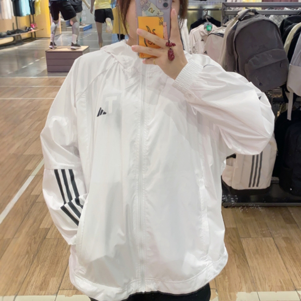 阿迪达斯外套薄款女装2025秋款风衣宽松运动舞蹈服梭织连帽夹克