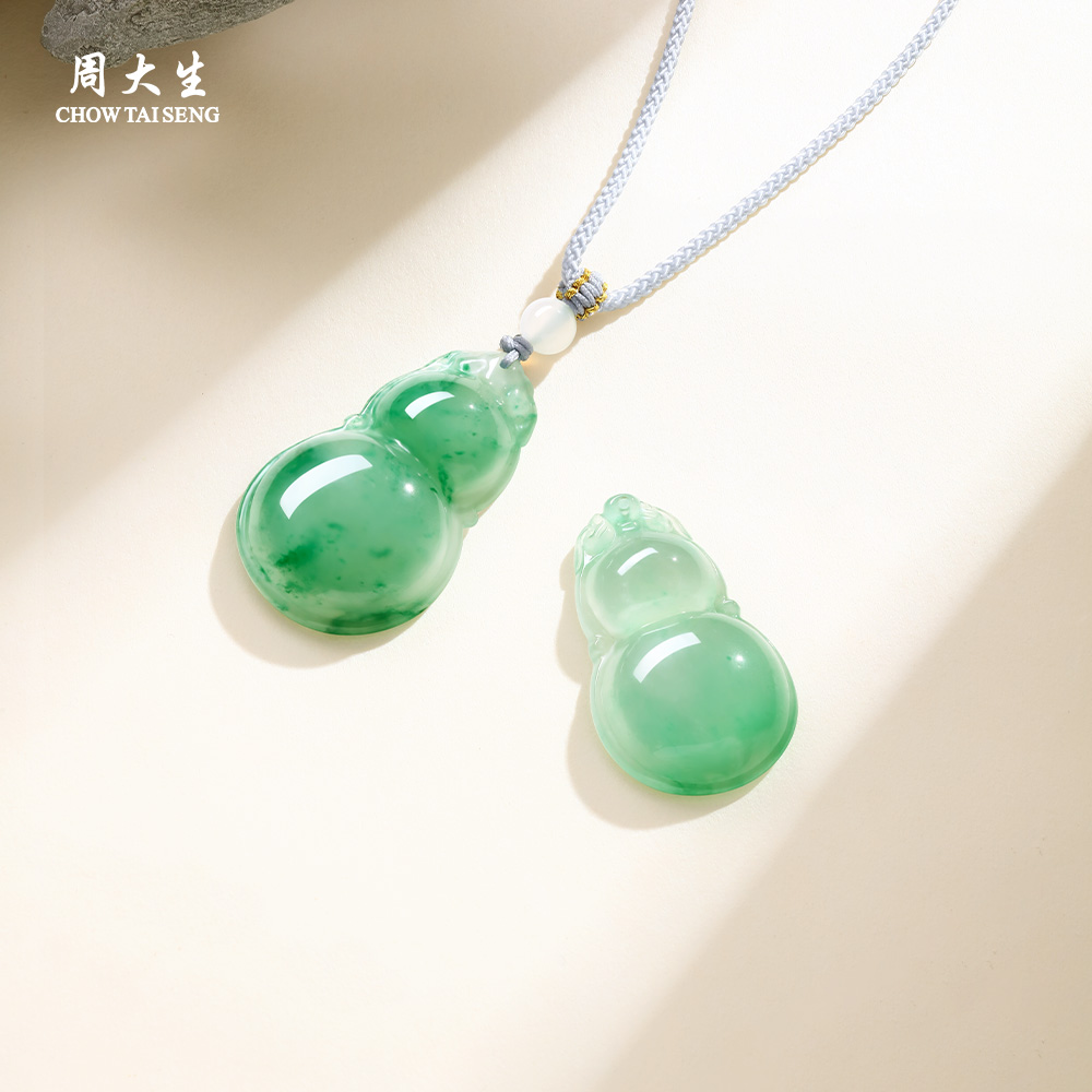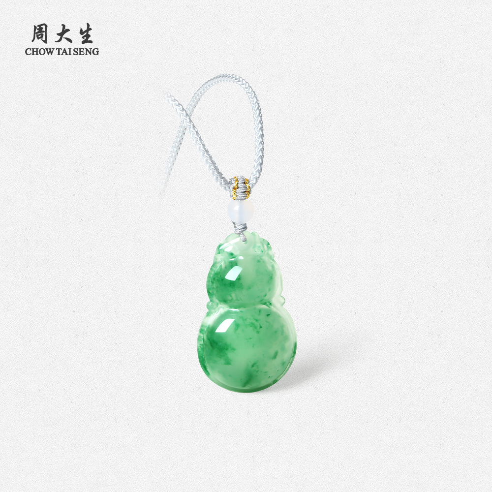 周大生天然正品飘花非洲翠玉吊坠女款葫芦项链挂坠带编绳生日礼物