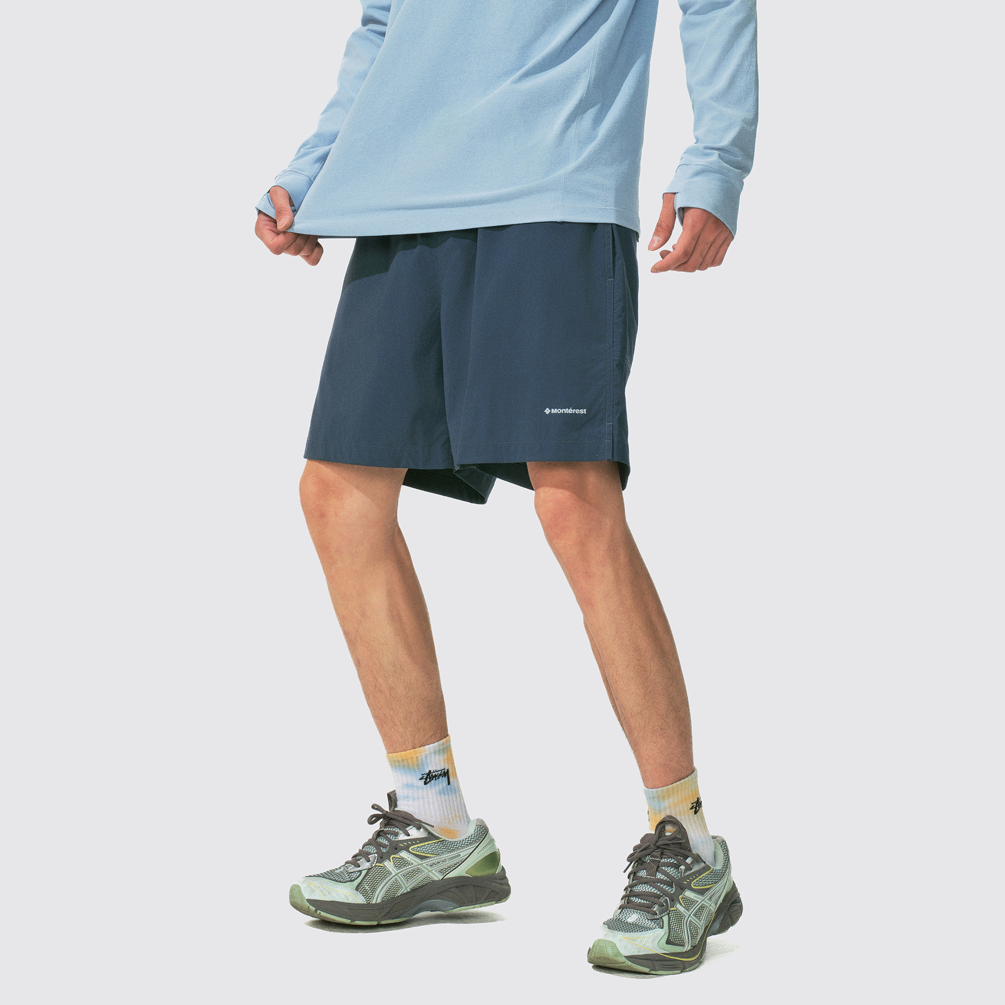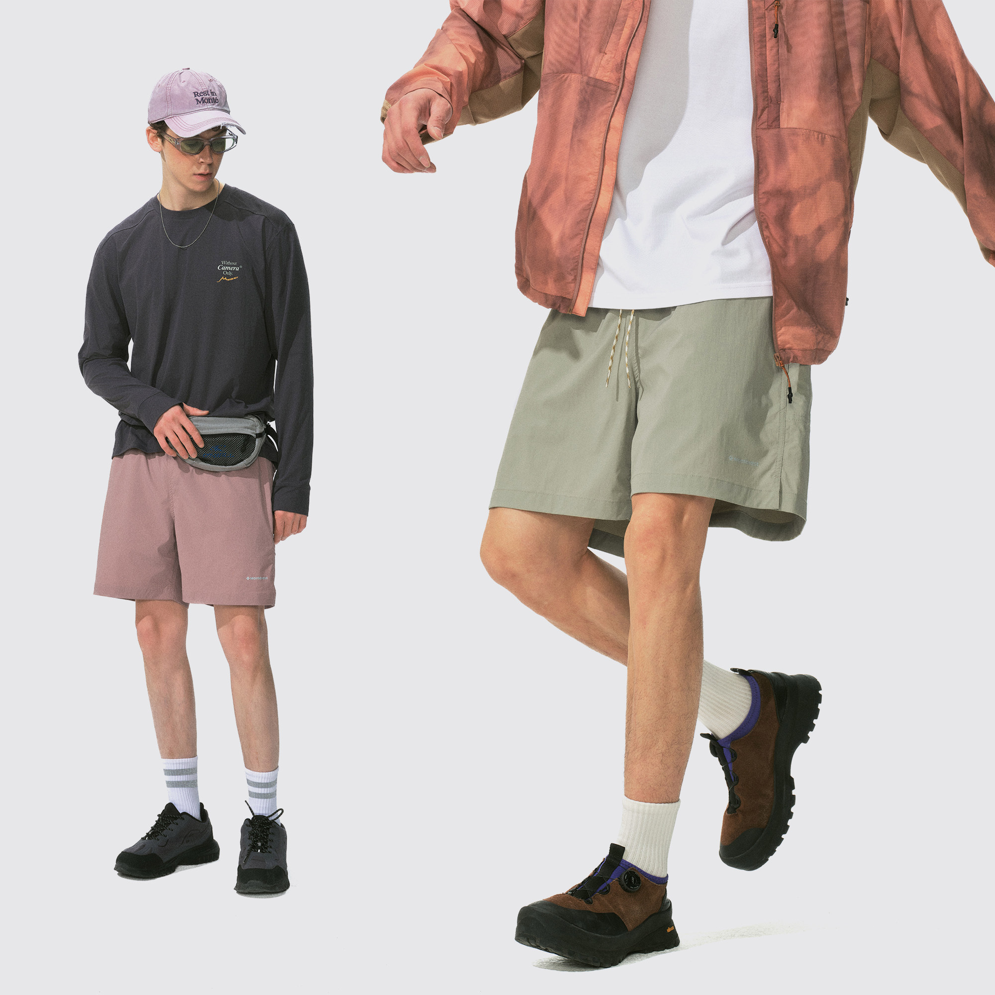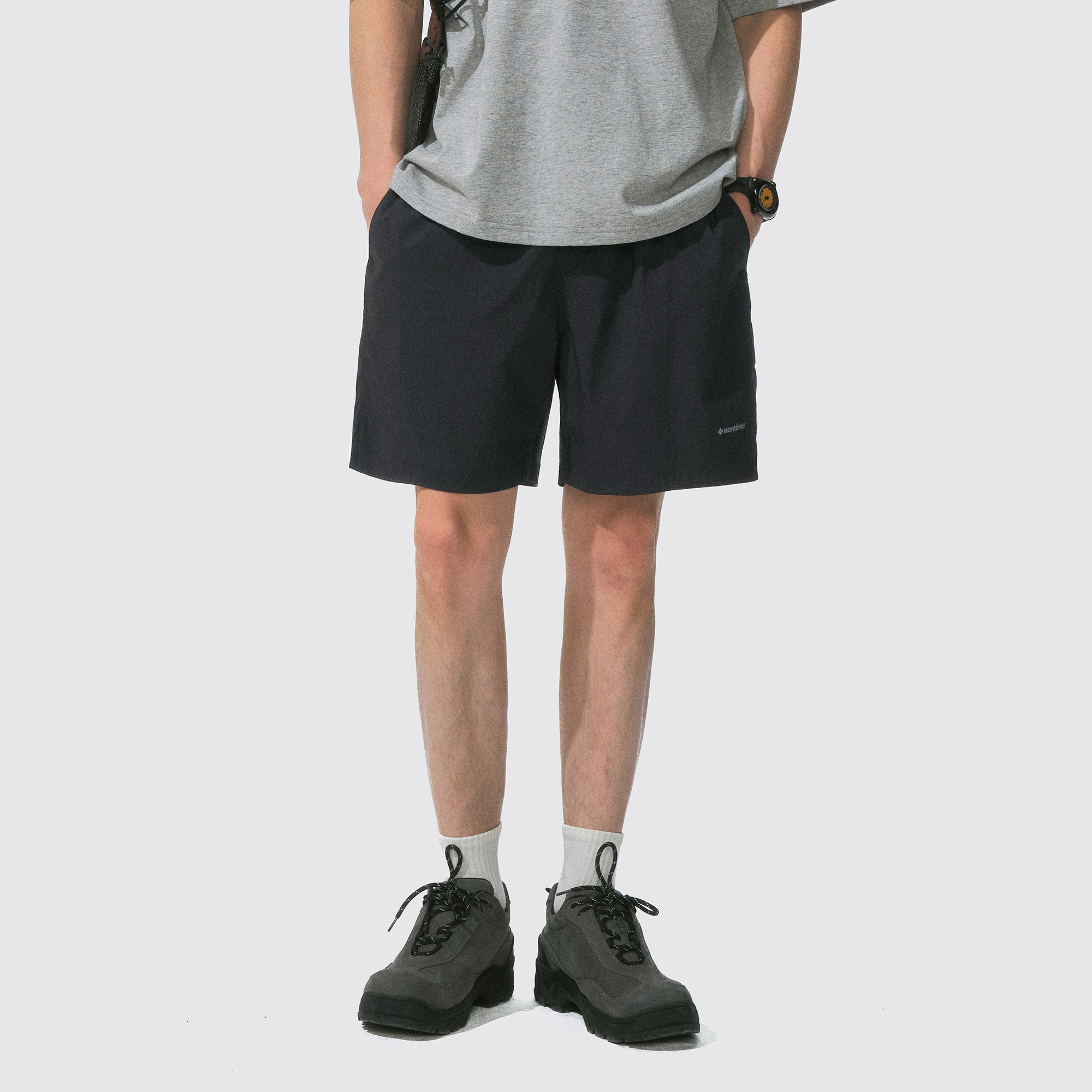 瞬时山野Monterest户外反光印花纯色短裤五分裤抽绳五袋沙滩裤男