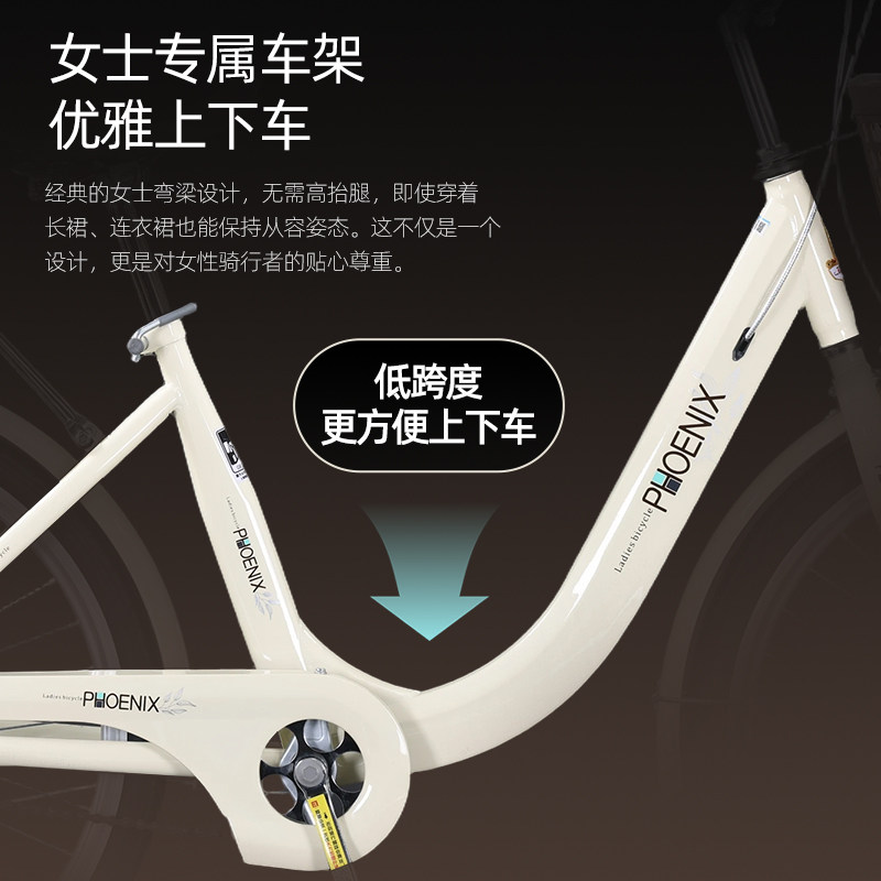 凤凰牌自行车女士老人学生轻便成人代步通勤车24/26寸淑女单车