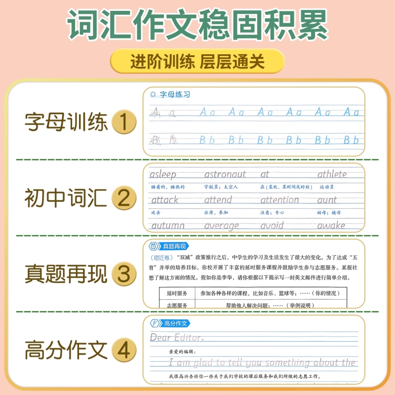 衡水体中考英语字帖初中生满分作文练字帖本2000词汇初中大学生考研英语英文每日单词古诗练习新版书写